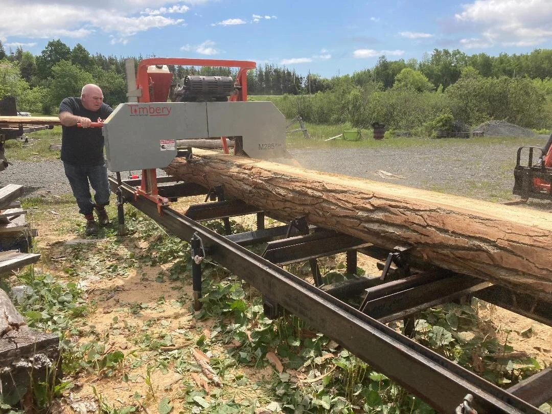 In the meantime, there’s a few more trees cut, an old baby barn to slam up against my shop for adequate length, a 27 year old planer to get working and 1,500 board feet of plank to run through it.
