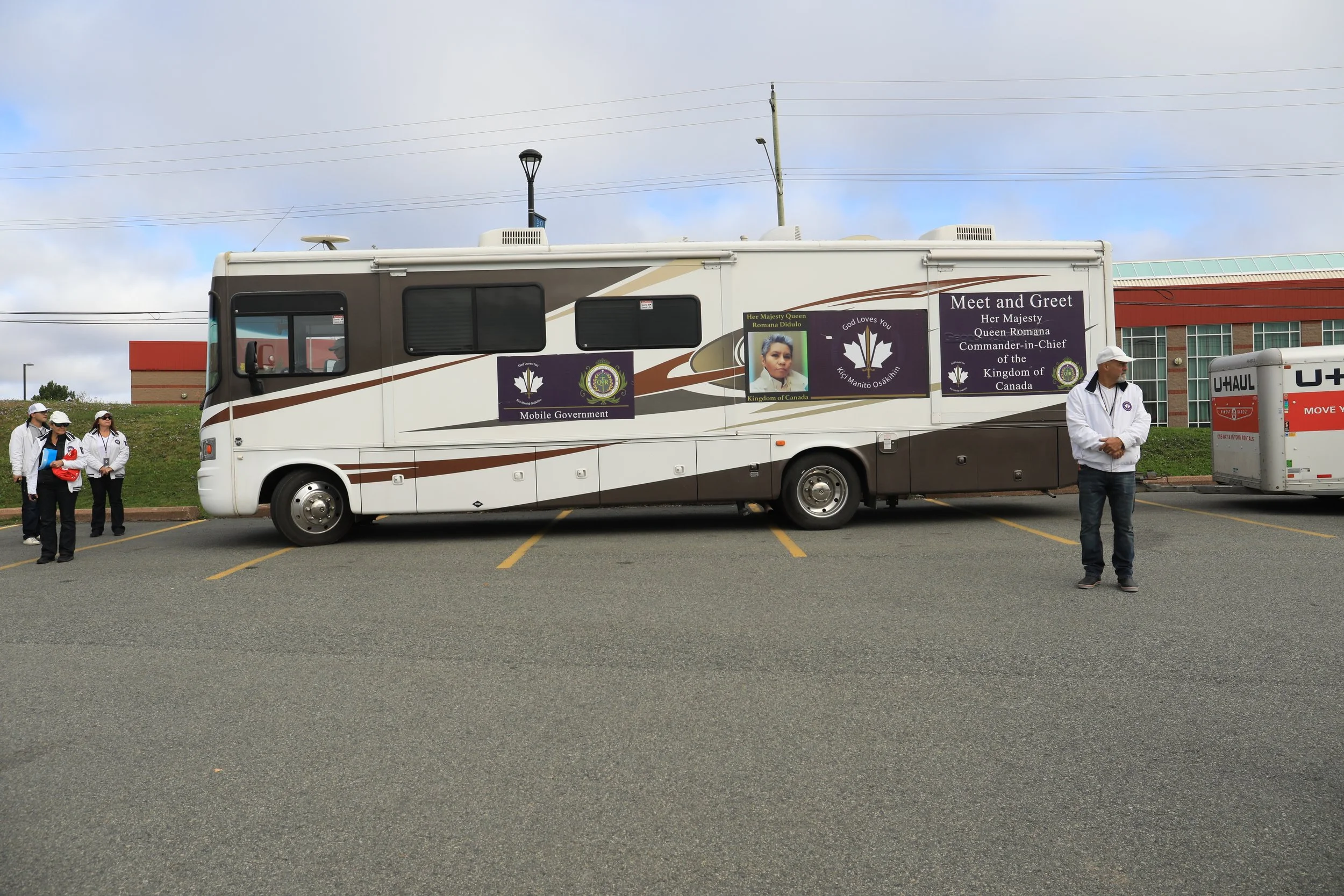 ‘QAnon Queen’ Romana Didula’s RV outside Port Hawkesbury on Tuesday, after leaving Jimtown. (JACK RONALDS PHOTO)